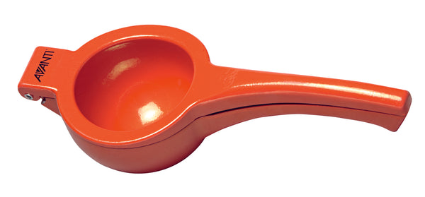 The Orange squeezer from Avanti can give you fresh orange juice or orange flavoring in one easy motion, Made from hard baked enamel, this squeezer extracts lemon juice minus the seeds and pulp with one press. Rust resistant and dishwasher safe.