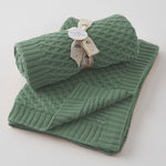 This beautiful 100% cotton basket weave blanket is luxuriously soft and perfect for using in the cot or pram on colder days. The blanket is a quality knit made from natural fibres and finished with a wide ribbed hem for a modern look. Comes rolled with a ribbon tied around and swing tag.