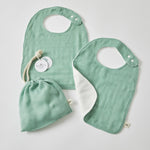 These 100% natural bibs are made with Cotton Muslin on the front and absorbent Bamboo Towelling on the back. Featuring adjustable snaps for easy use, these large, ultra-soft bibs are comfortable for little ones to wear whilst keeping their clothes clean against spills and dribbles! Both bibs come in a matching bag for the perfect storage solution and great for using when you’re on the go.