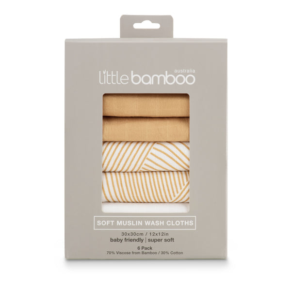 Little Bamboo muslin face washers 6 packs are the perfect bath time and clean-up accessory for baby’s skin.