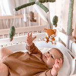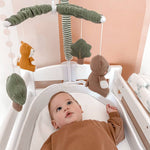 Little ones are going to love watching these sweet forest characters rotate overhead to Brahms's lullaby as they drift off to sleep. This gorgeous musical cot mobile features 100% cotton knit characters with exquisite detailing and is the perfect finishing touch for your nursery.