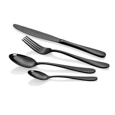 Modern, timeless design from high quality stainless steel with mirror finish in black onyx titanium.Casual place setting for six:6 Dinner Knives6 Dinner Forks6 Dessert Spoons6 TeaspoonsGift boxDesigned in Australia...