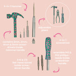 This stunning Multi Tool Set not only boasts an attractive design but also includes all the must-have tools for DIY enthusiasts. Equipped with adjustable pliers, a versatile 4-way screwdriver, and a comprehensive 6-in-1 hammer set, it's perfect for tackling various projects with ease.