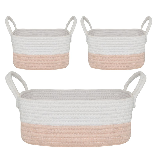 Keep your nursery neat and tidy with this 100% cotton rope 3-piece storage set.