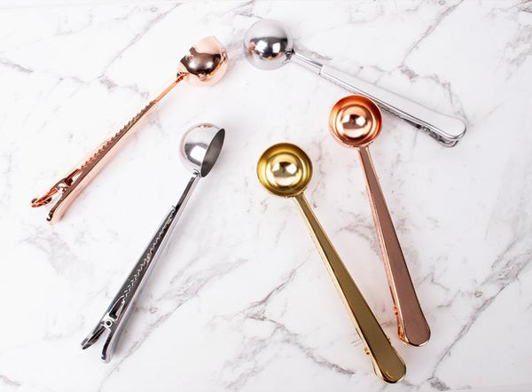 Measure coffee with the spoon end of the clip